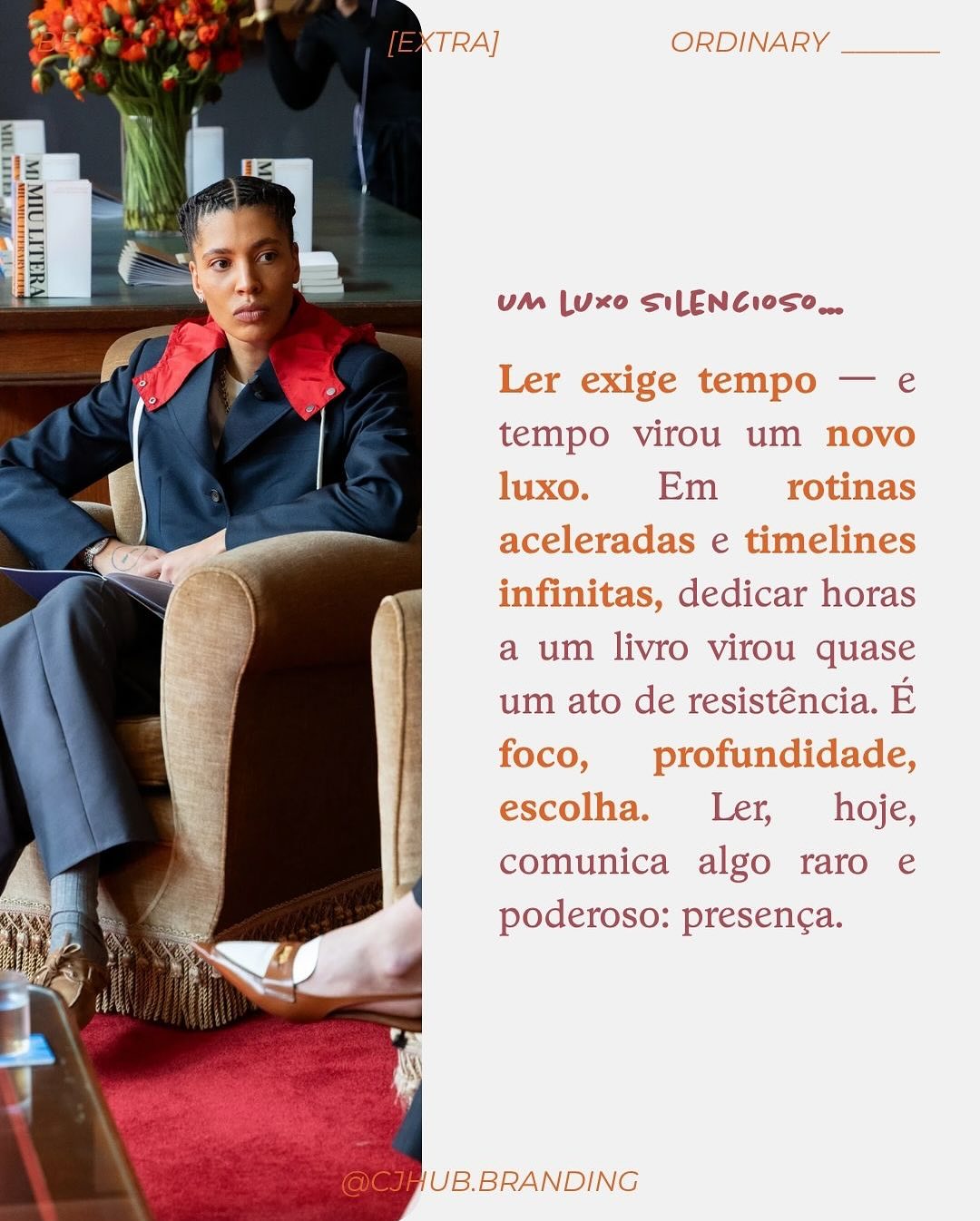 Books, but make it fashion📚 Livros saíram da estante e foram direto para os moodboards das marcas. Hoje, eles aparecem em desfiles, newsletters de celebs, eventos de moda e, claro, nas redes — como símbolos de repertório, conexão e estilo. Ler virou lifestyle! E você? Acha que essa tendência é passageira ou veio para ficar?